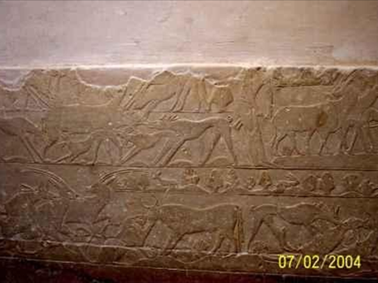 In the then still fertile Sahara Savannah landscape inhabited by nomads, wild animals were domesticated. The nomads began to raise domestic animals, the first of which probably was the dog, because it was helpful in hunting.