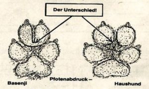Jackal and Basenji: It is noteworthy that the Basenji paws are different from those of other canine species: their middle toes are partially grown together. It is assumed that Basenjis carry some Jackal genes. A Jackal is a member of any of three small to medium-sized species of predators of the genus Canis, found in Africa.